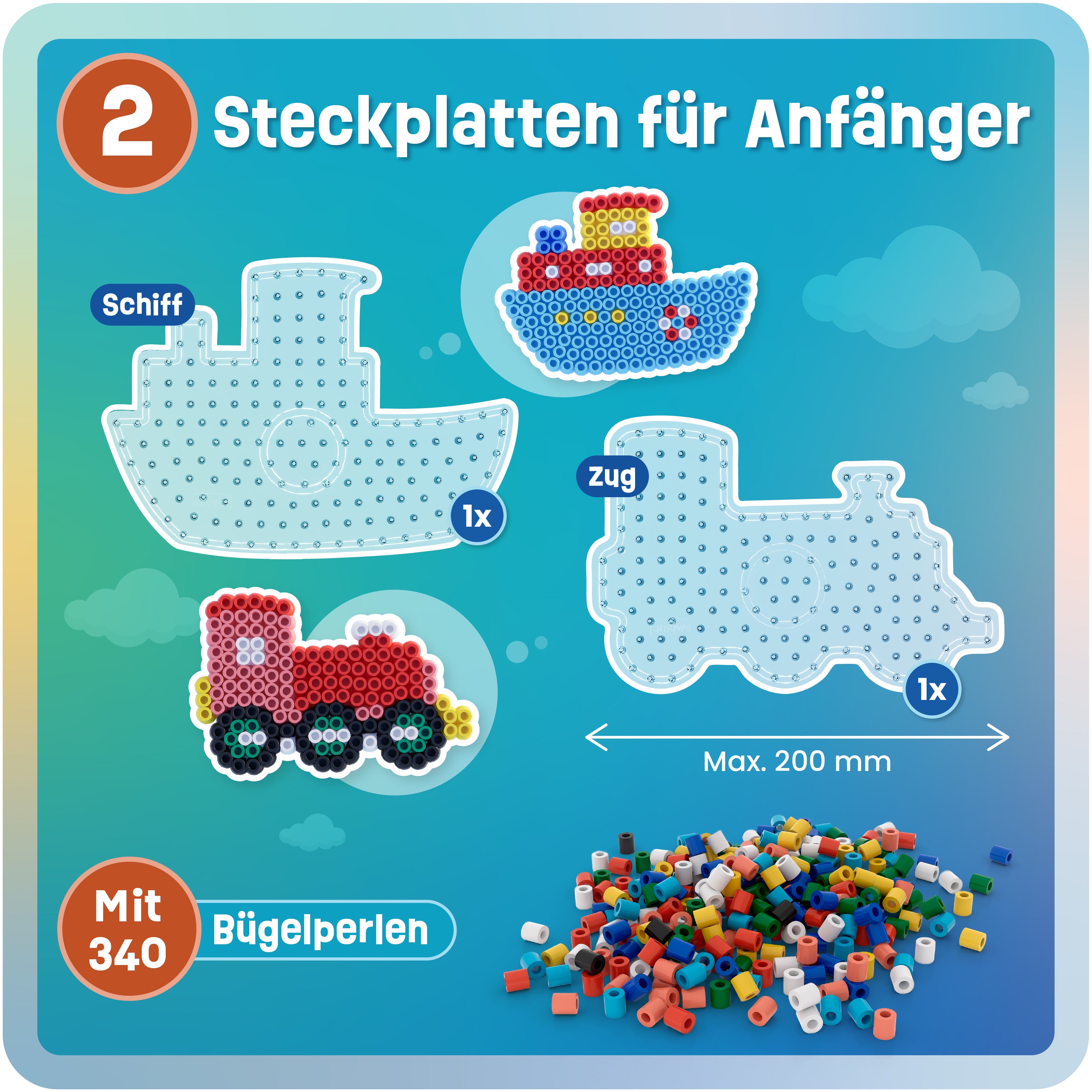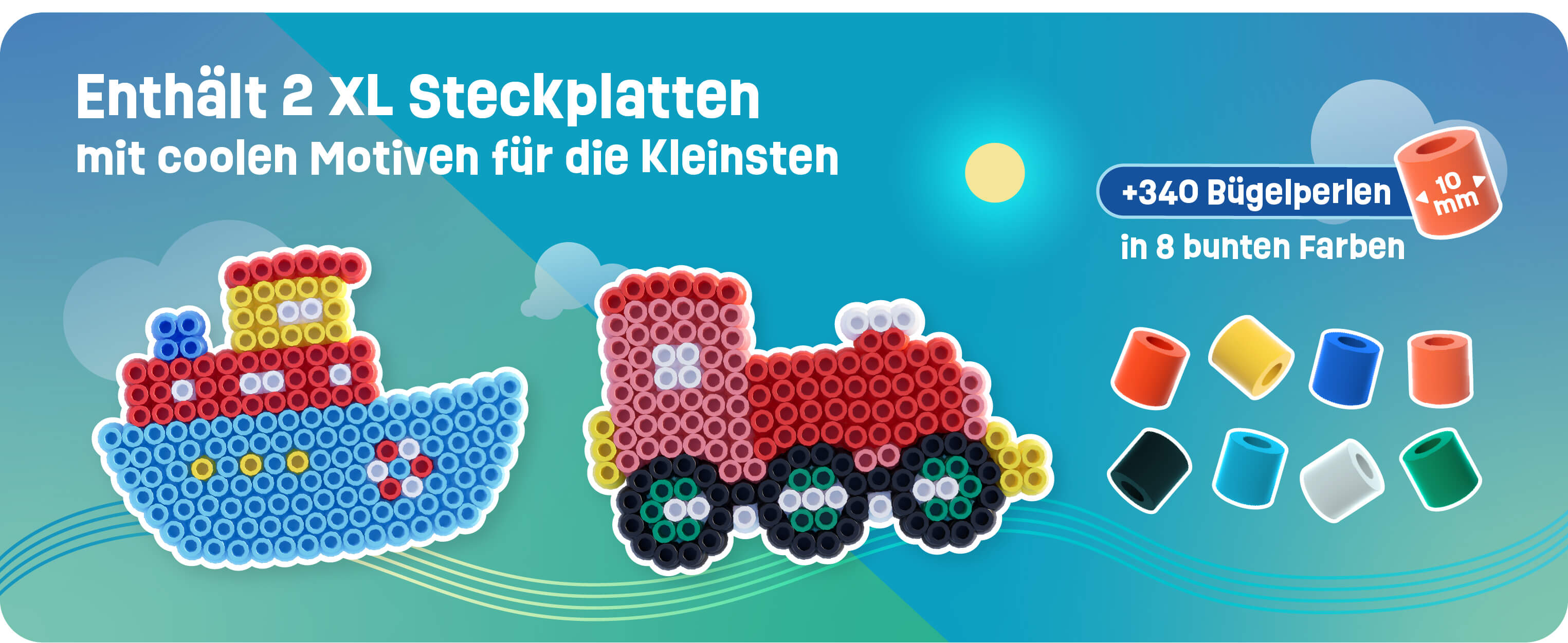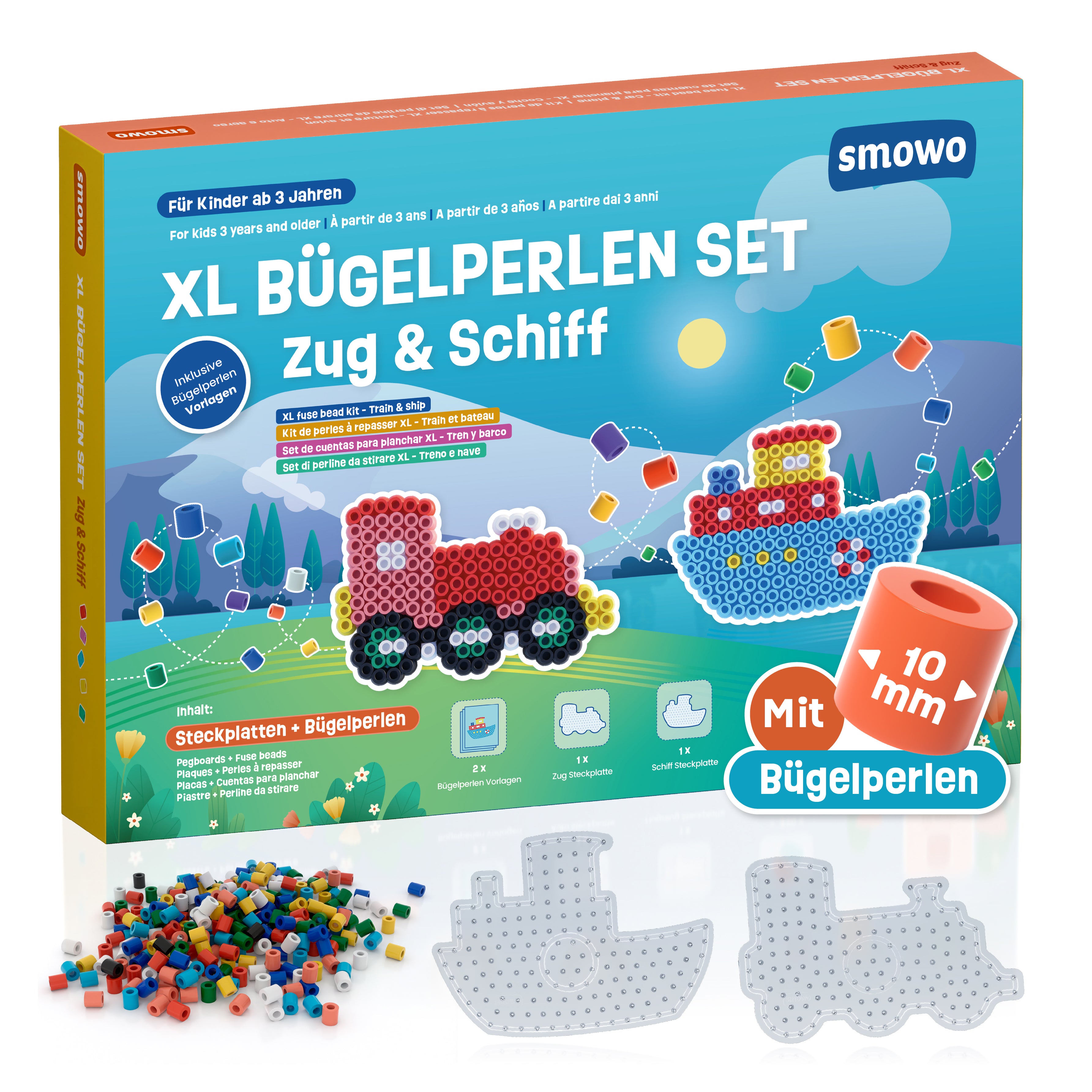 Set mit 2 XL Steckplatten + 10 mm Bügelperlen – Zug & Schiff