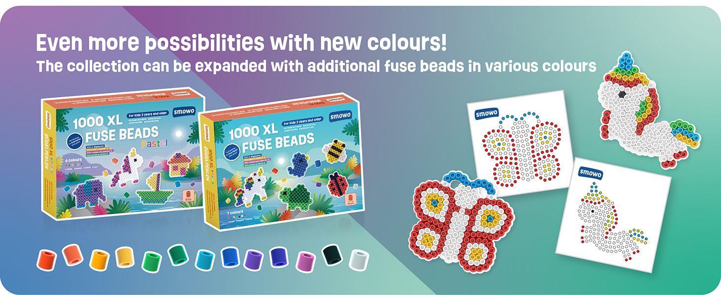 Whether as a birthday present, an Easter or Christmas gift, or for creative moments on holiday, this fuse bead set is popular with both girls and boys. It can also be perfectly combined with additional pegboards and beads in bright, pastel or glitter finishes to create even more imaginative designs.