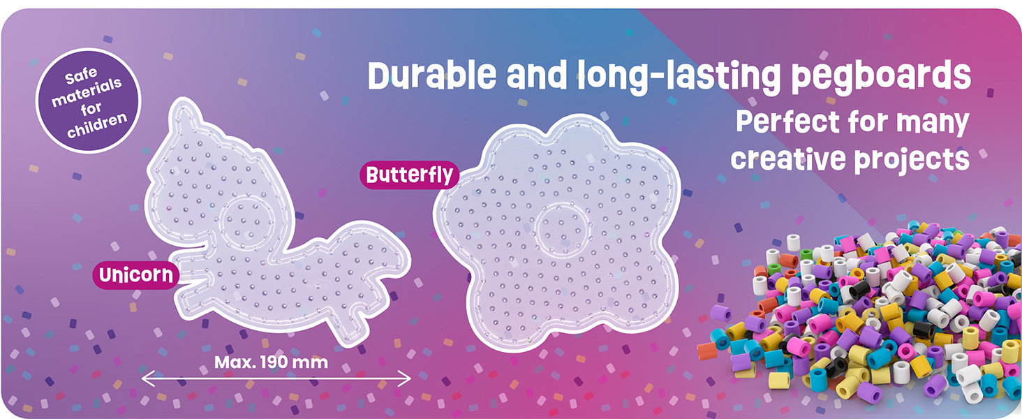 Set with 2 XL pegboards + 10 mm Fuse Beads – Unicorn & Butterfly