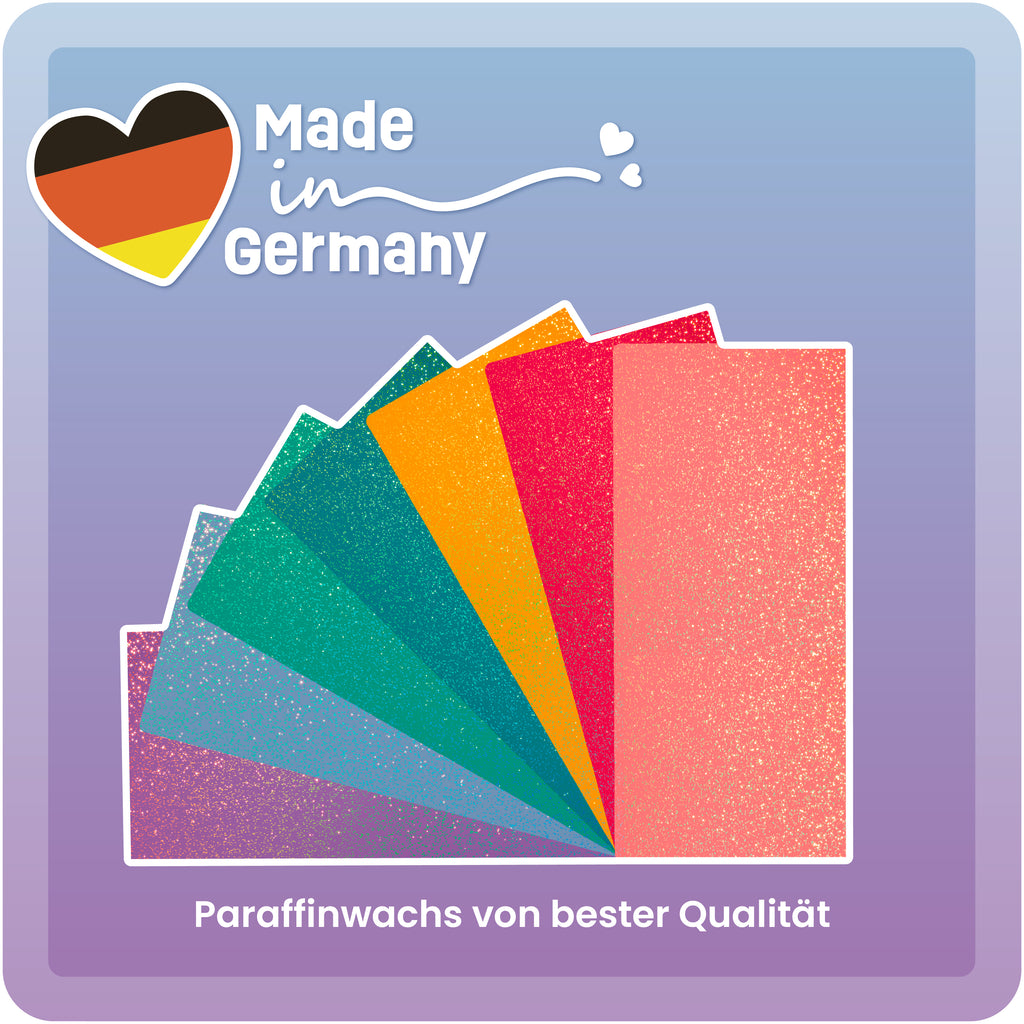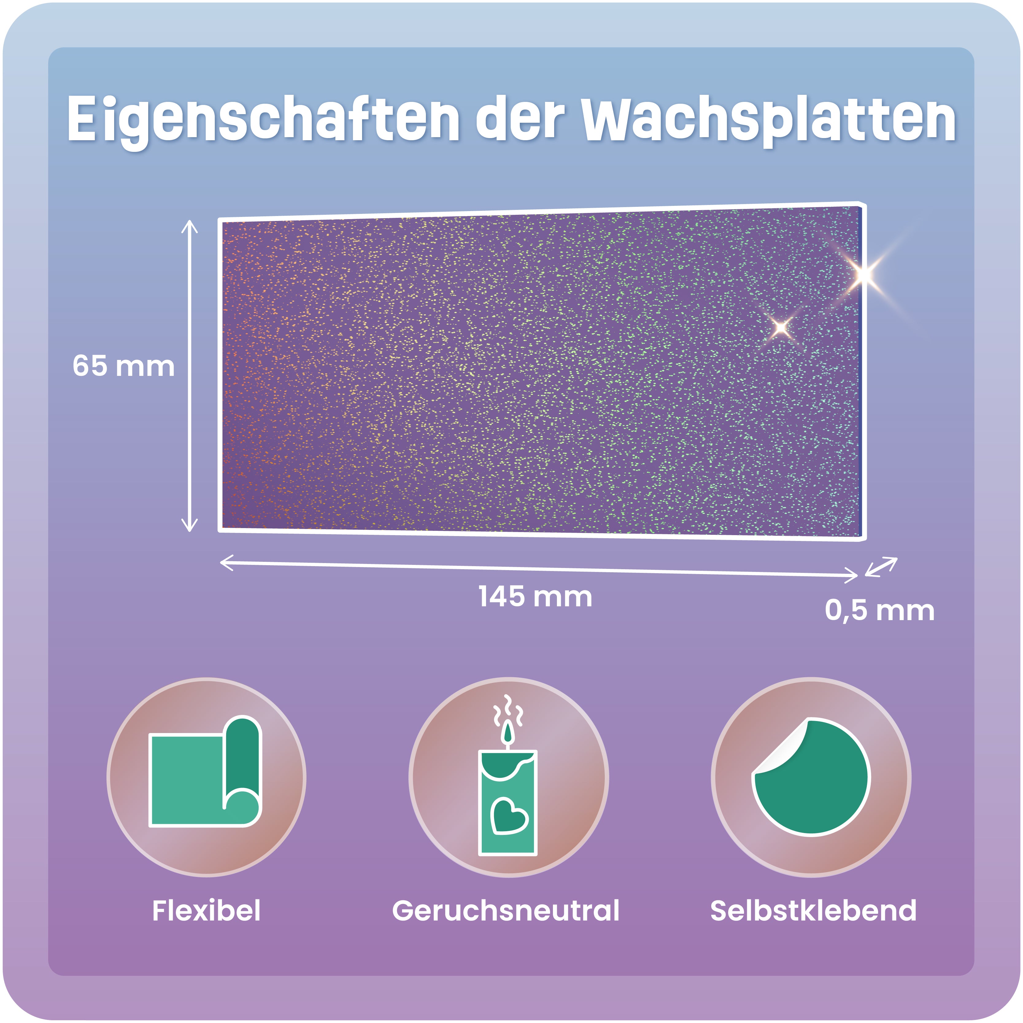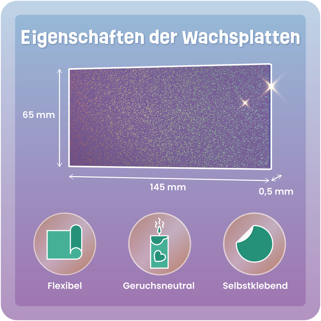 <p>The Smowo “Glimmer” wax sheet set includes 7 wax sheets in vibrant pastel colors. Made in Germany, each sheet measures 145 × 65 mm and is 0.5 mm thick. They are made of paraffin wax.</p>