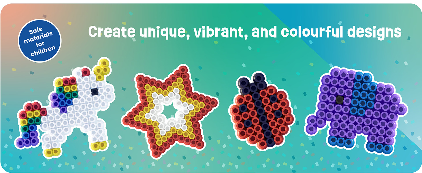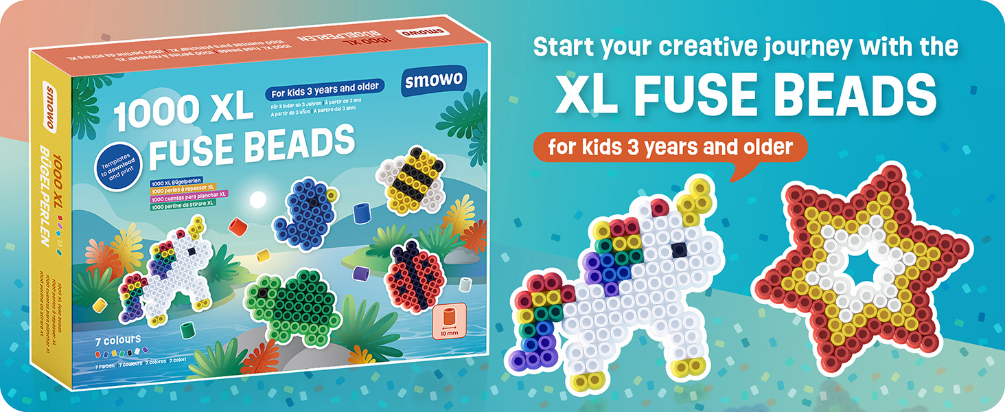 This set includes 1,000 high-quality XL fuse beads with a 10 mm diameter in seven vibrant colours: white, black, red, yellow, blue, dark green and purple. The large beads are ideal for children aged 3 and above, offering creative fun with easy-to-handle XL pieces. As children design and place their beads, they naturally develop fine motor skills, concentration and creativity while bringing their ideas to life.