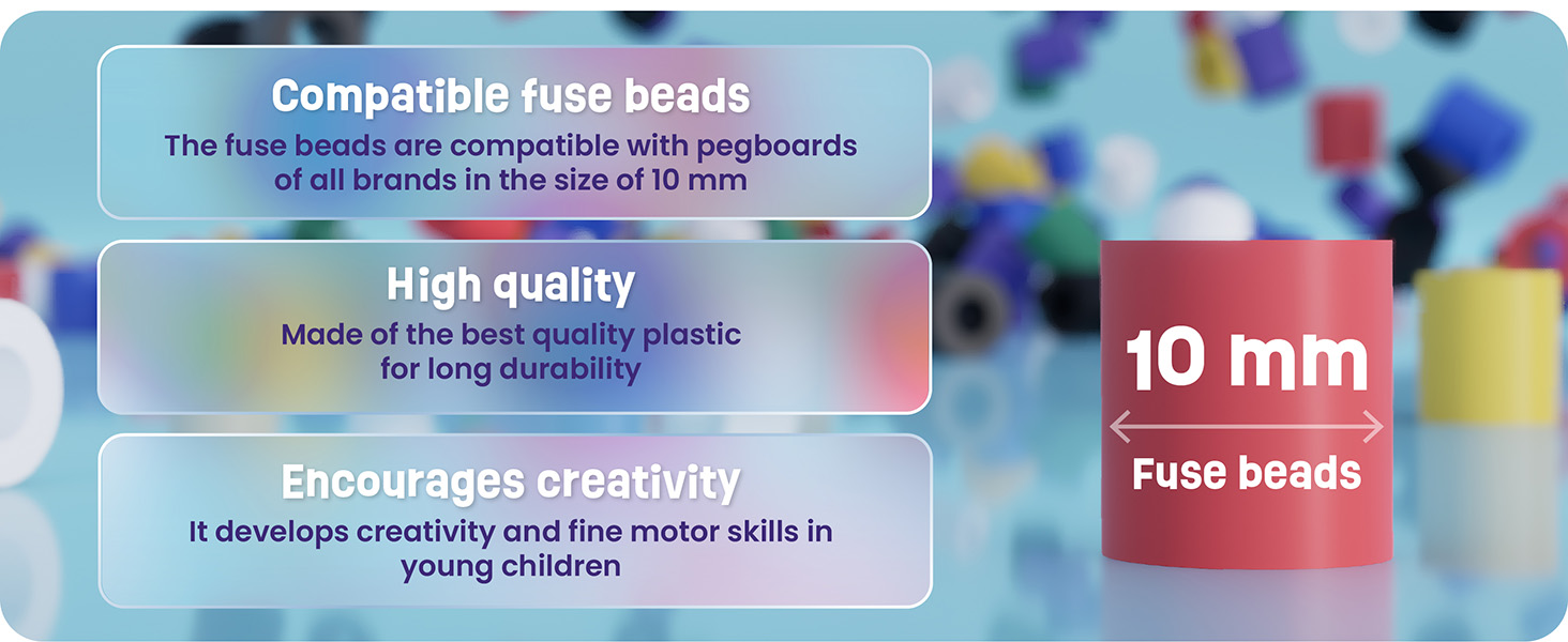 The beads combine perfectly with our own pegboards and are also compatible with common 10 mm pegboards from other brands, making it easy to create colourful works of art to be proud of.
