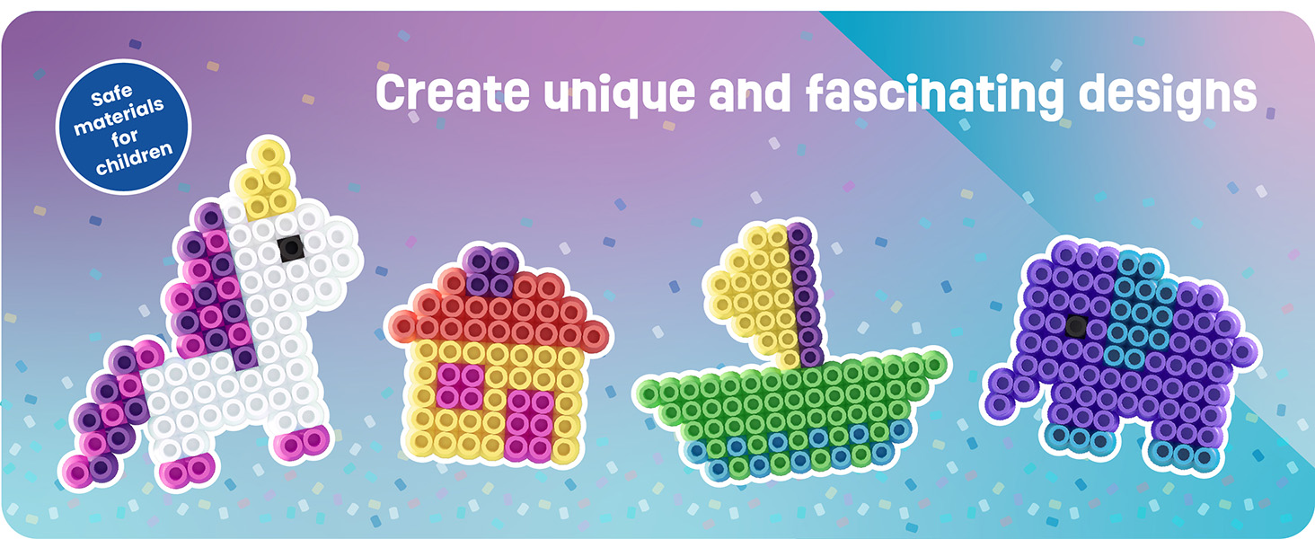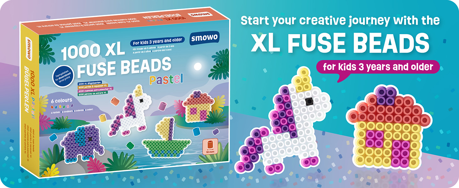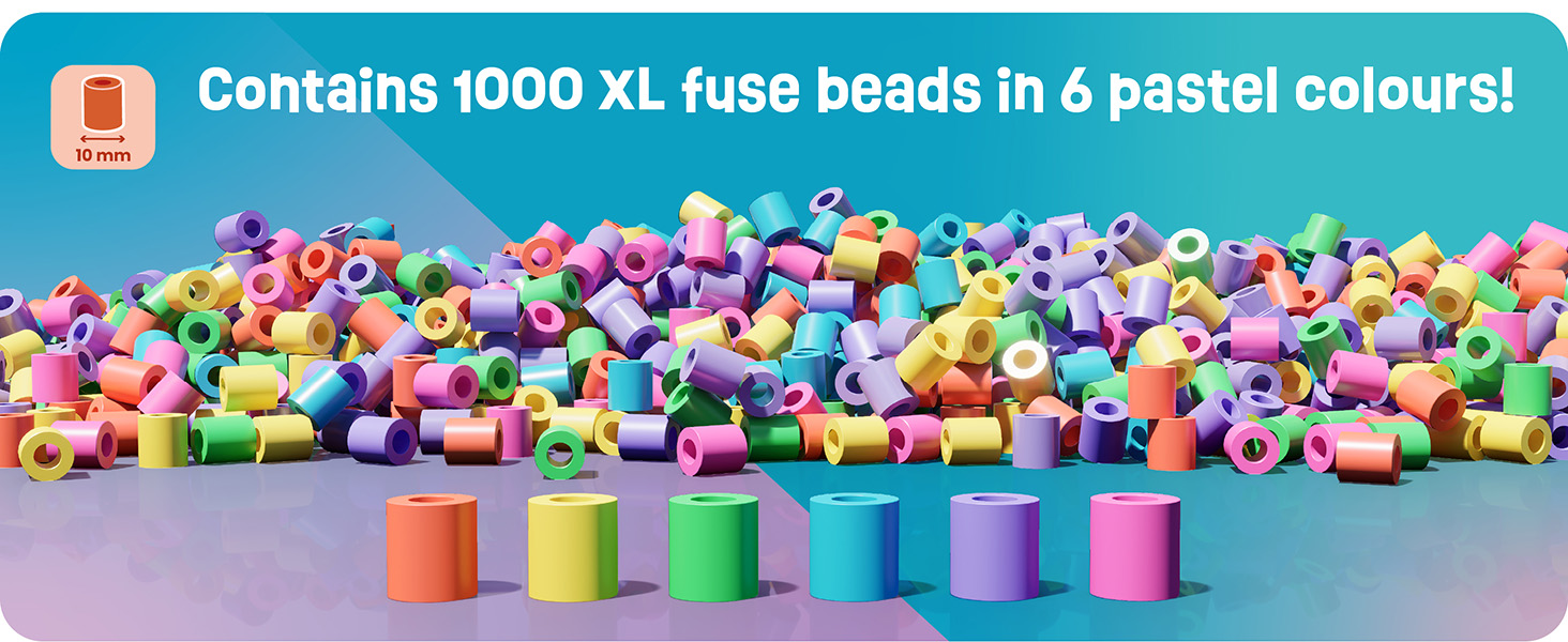 This generous set includes 1,000 high-quality XL ironing beads with a 10 mm diameter in six soft pastel colours: yellow, red, purple, blue, green and pink. The large beads are perfect for children aged three and above, offering an easy and enjoyable introduction to creative crafting. As children place the beads, they naturally develop fine motor skills, concentration, and creativity while bringing their own imaginative ideas to life.