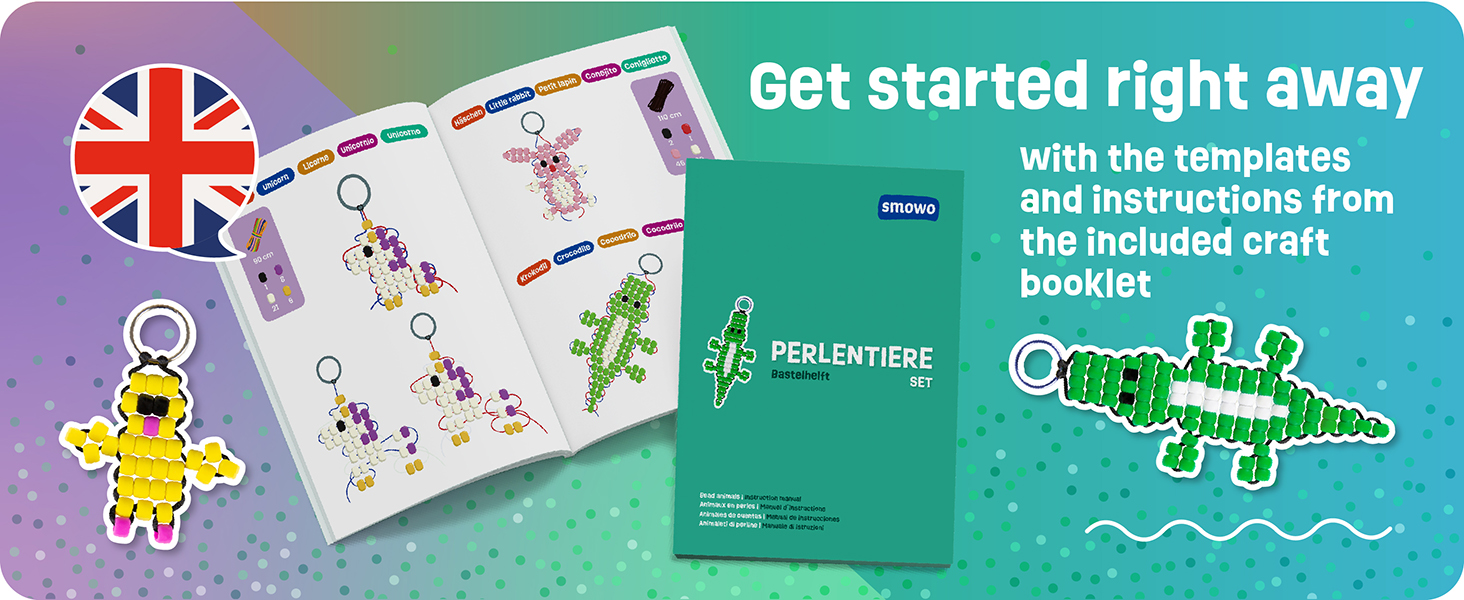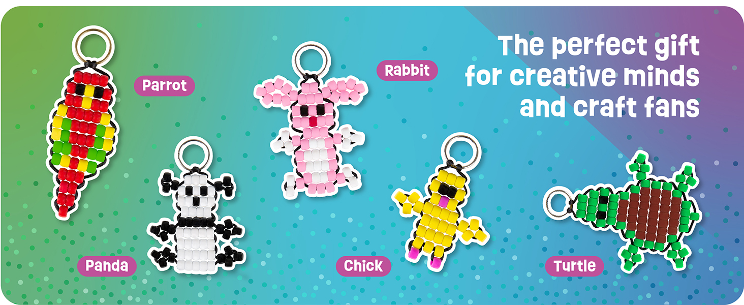 The set includes a practical sorting box, 9 coloured key rings, rainbow cord, black cord and detailed step-by-step instructions featuring 9 charming animal designs. Children can follow the guide to create their own key rings with confidence and enjoyment.