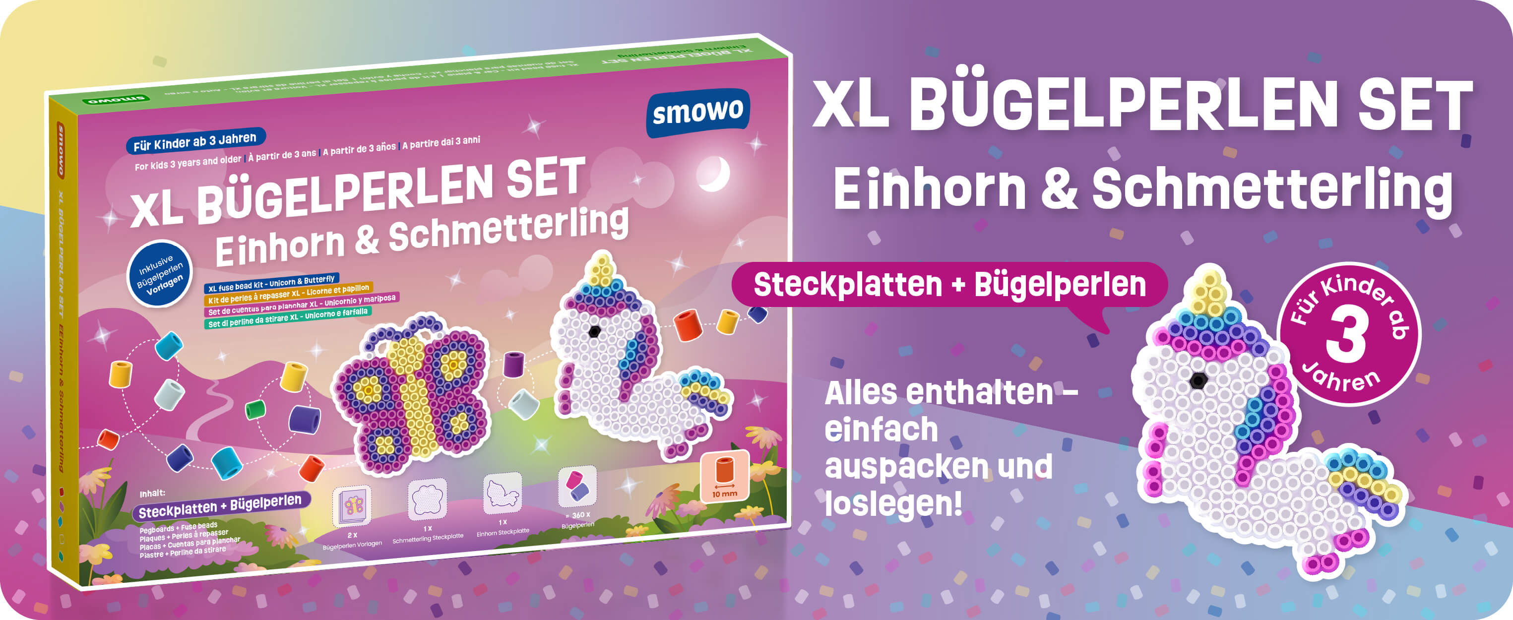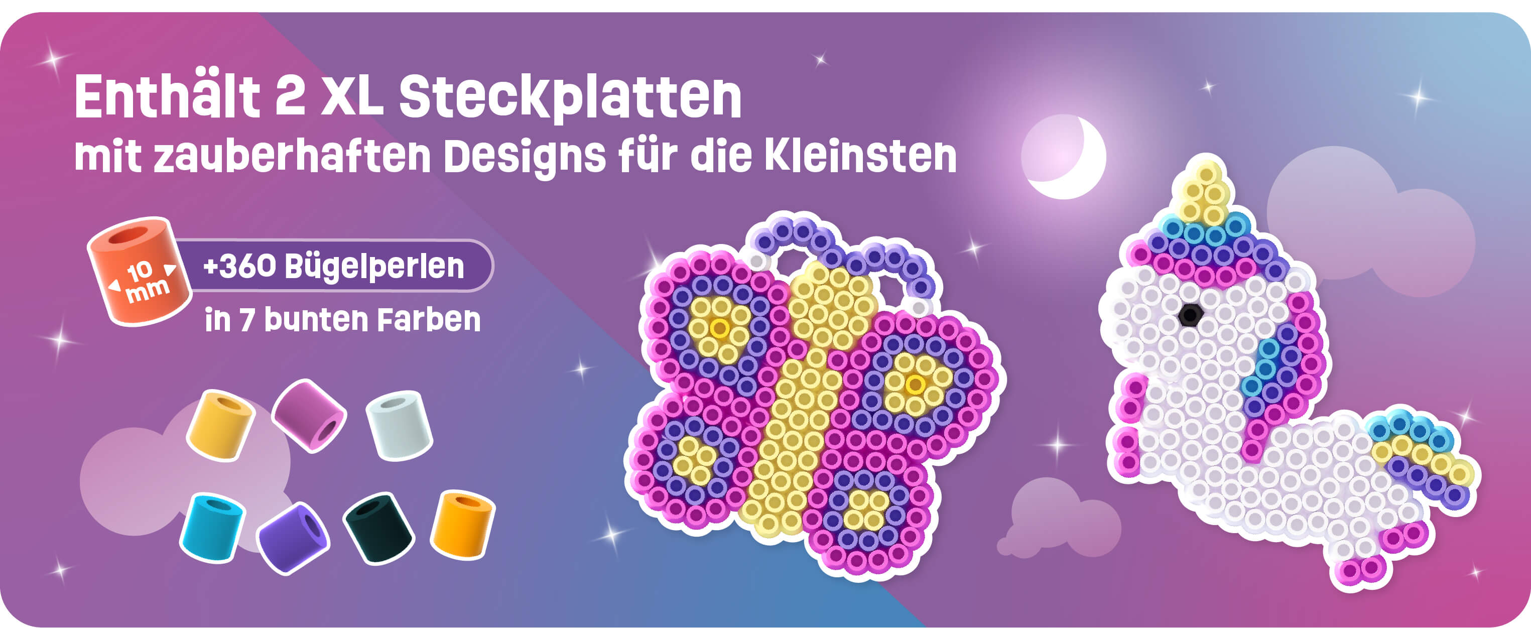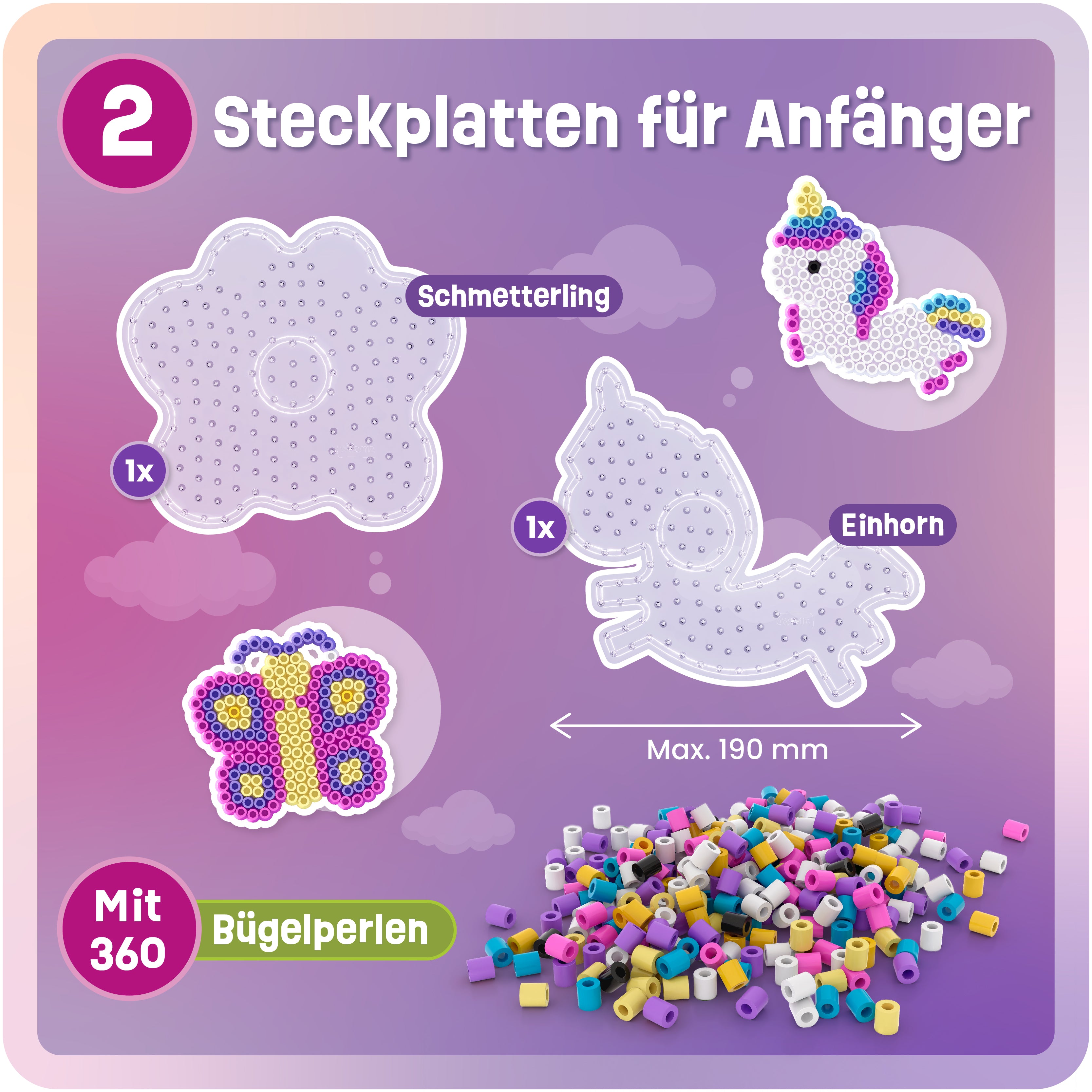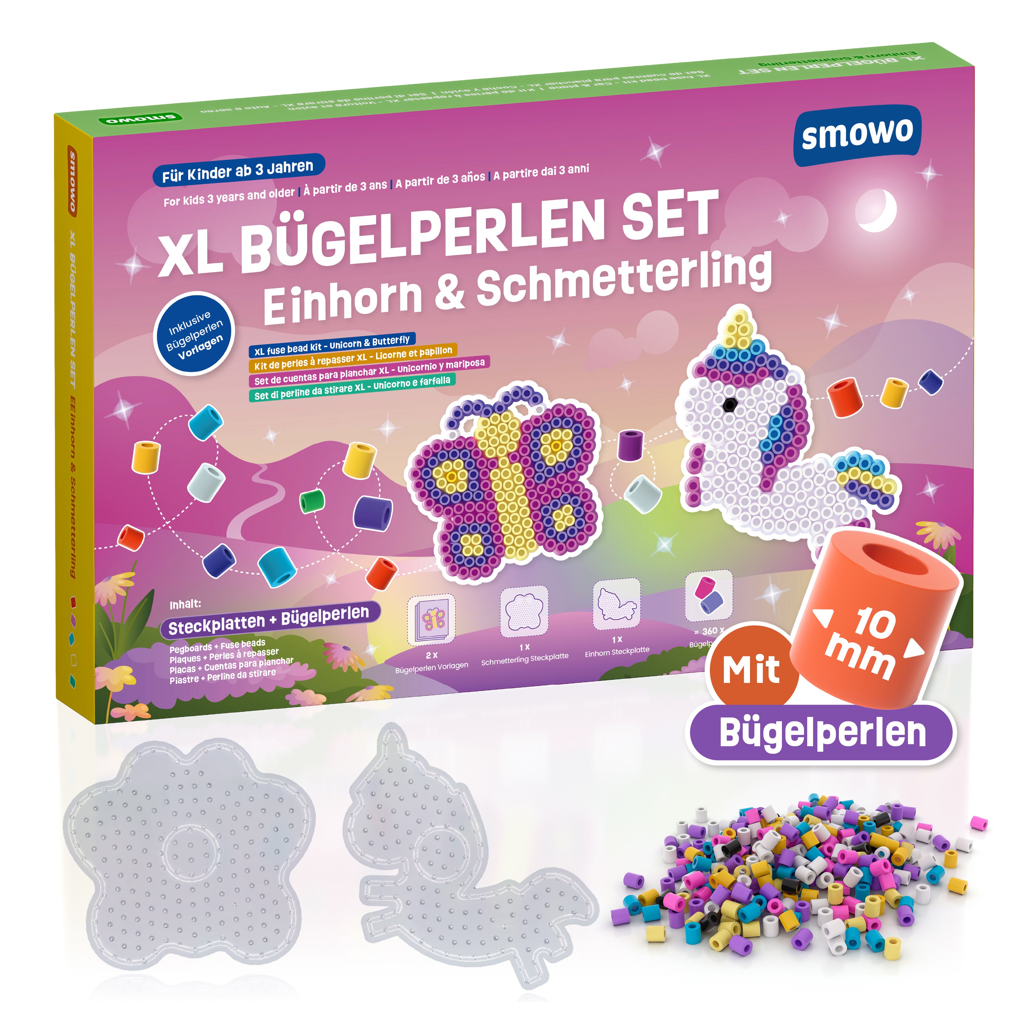 Set mit 2 XL Steckplatten + 10 mm Bügelperlen – Einhorn & Schmetterling