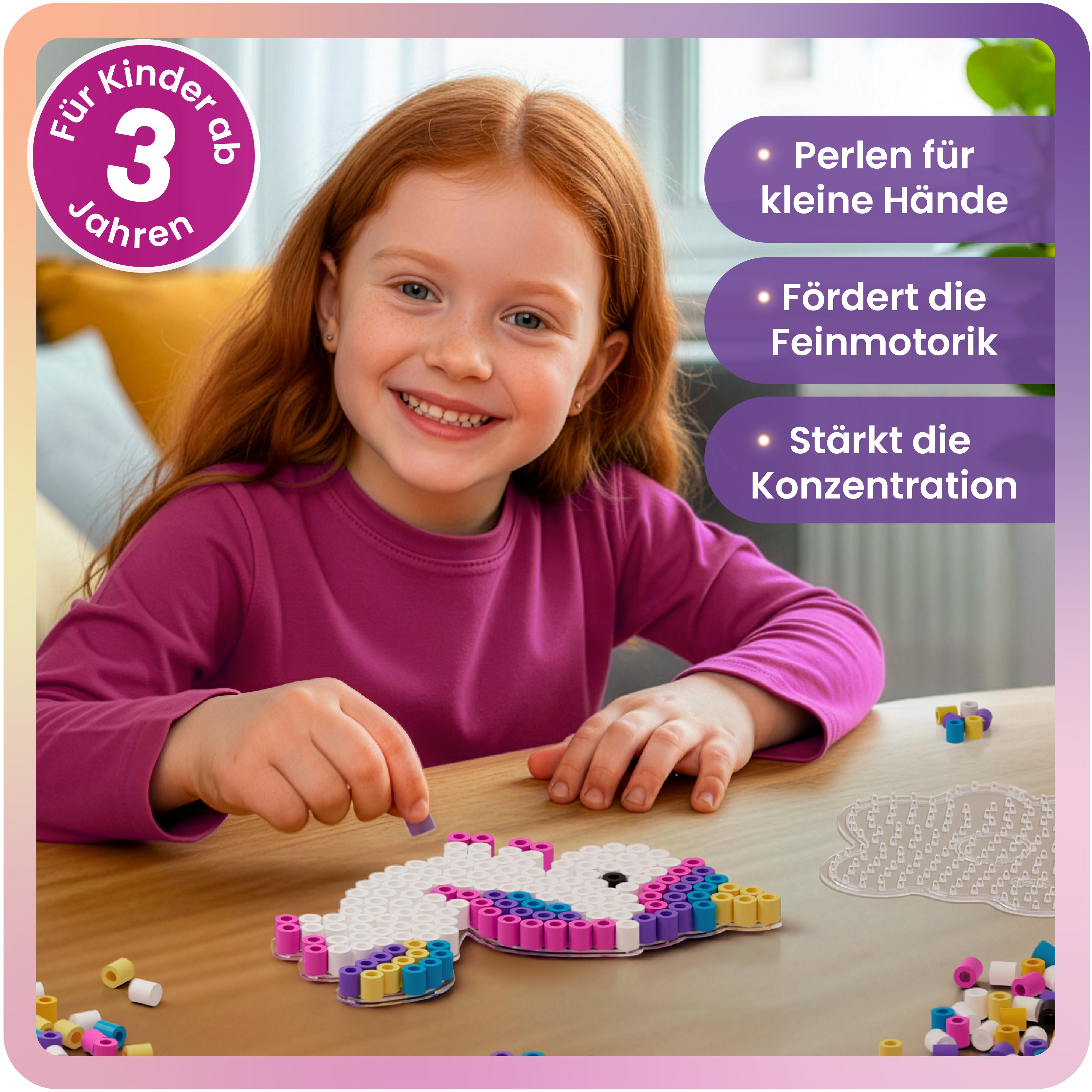 Das Set eignet sich ideal als Starterset für Kinder ab drei Jahren und unterstützt spielerisch die Entwicklung der Feinmotorik. Eine detaillierte Anleitung zum Bügeln ist online verfügbar und sorgt für eine sichere und einfache Anwendung. Dank der robusten, langlebigen Verarbeitung aus hochwertigem Kunststoff ist das Set besonders stabil und für viele kreative Stunden geeignet.