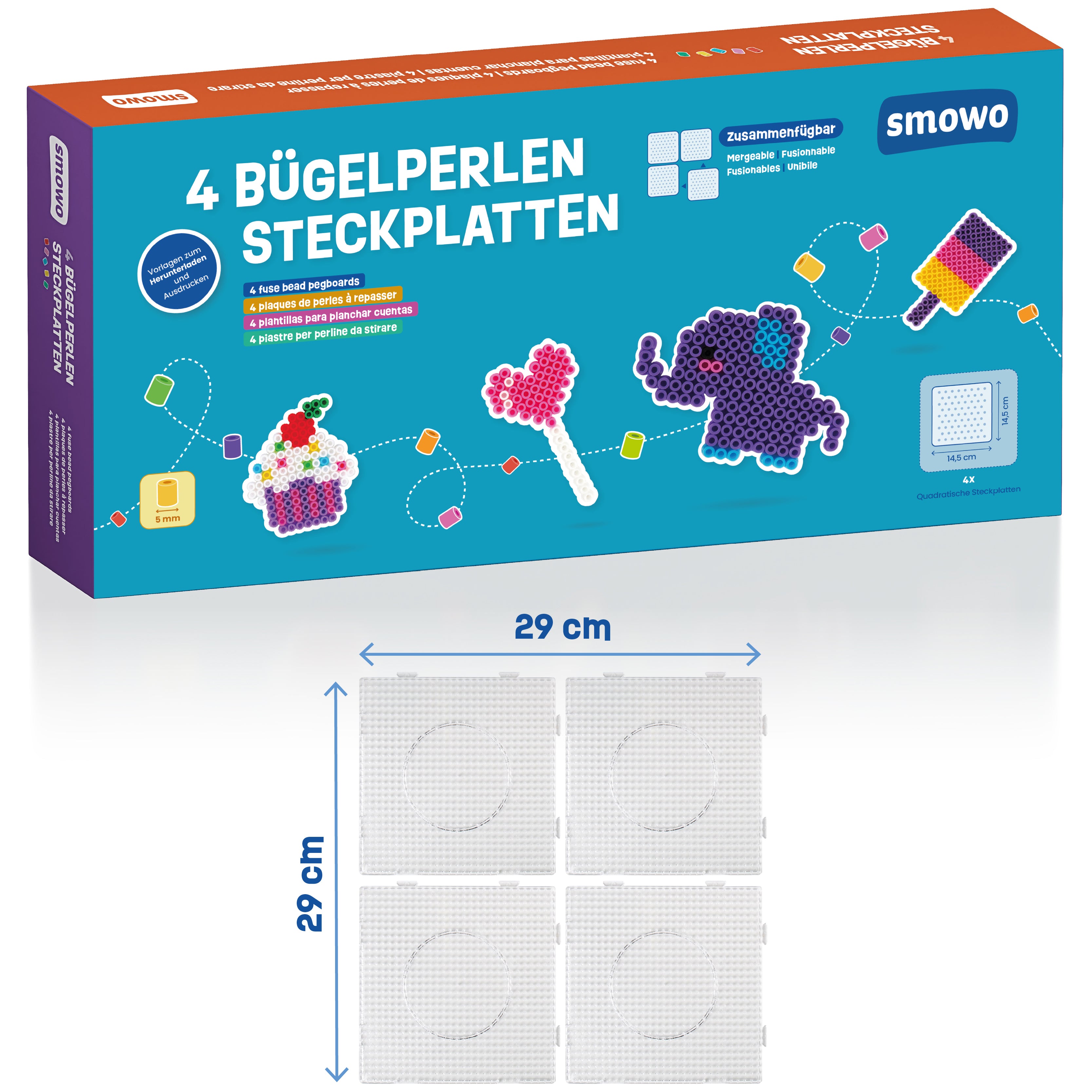 Mit diesem MEGA SPARPAKET erhalten Sie 4 hochwertige Steckplatten im Format 14,5 x 14,5 cm, die sich hervorragend für die gemeinsame Arbeit mit Bügelperlen eignen. Das großzügige Angebot an Steckplatten bietet viel Spaß für die ganze Familie.