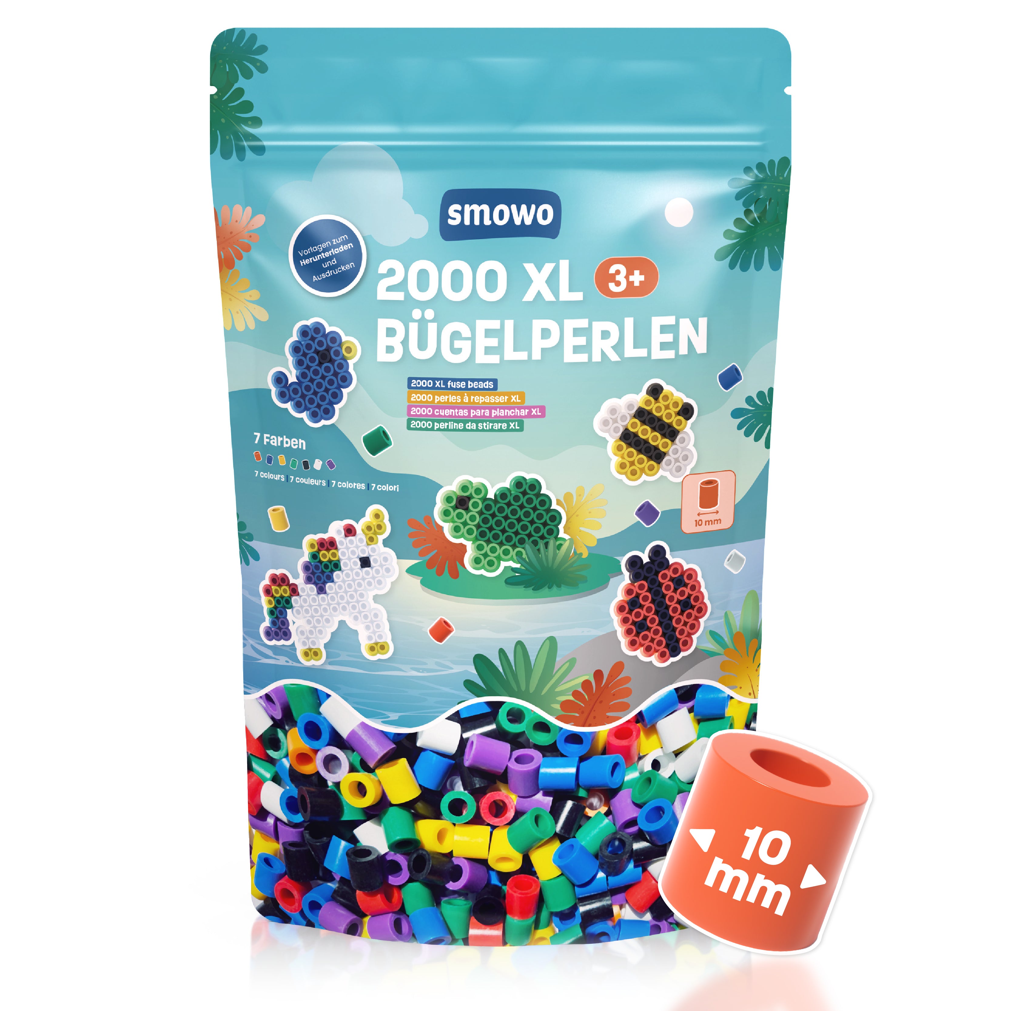 Große 10mm Bügelperlen 2000 Stück für Kinder ab 3 Jahren - 7 bunte Farben